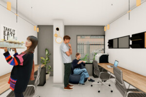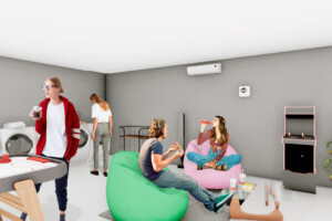 En el primer piso: Salón social, gimnasio, Recepción, Oficina de Administración, coworking, zona de lavandería comunal, parqueaderos comunales.
